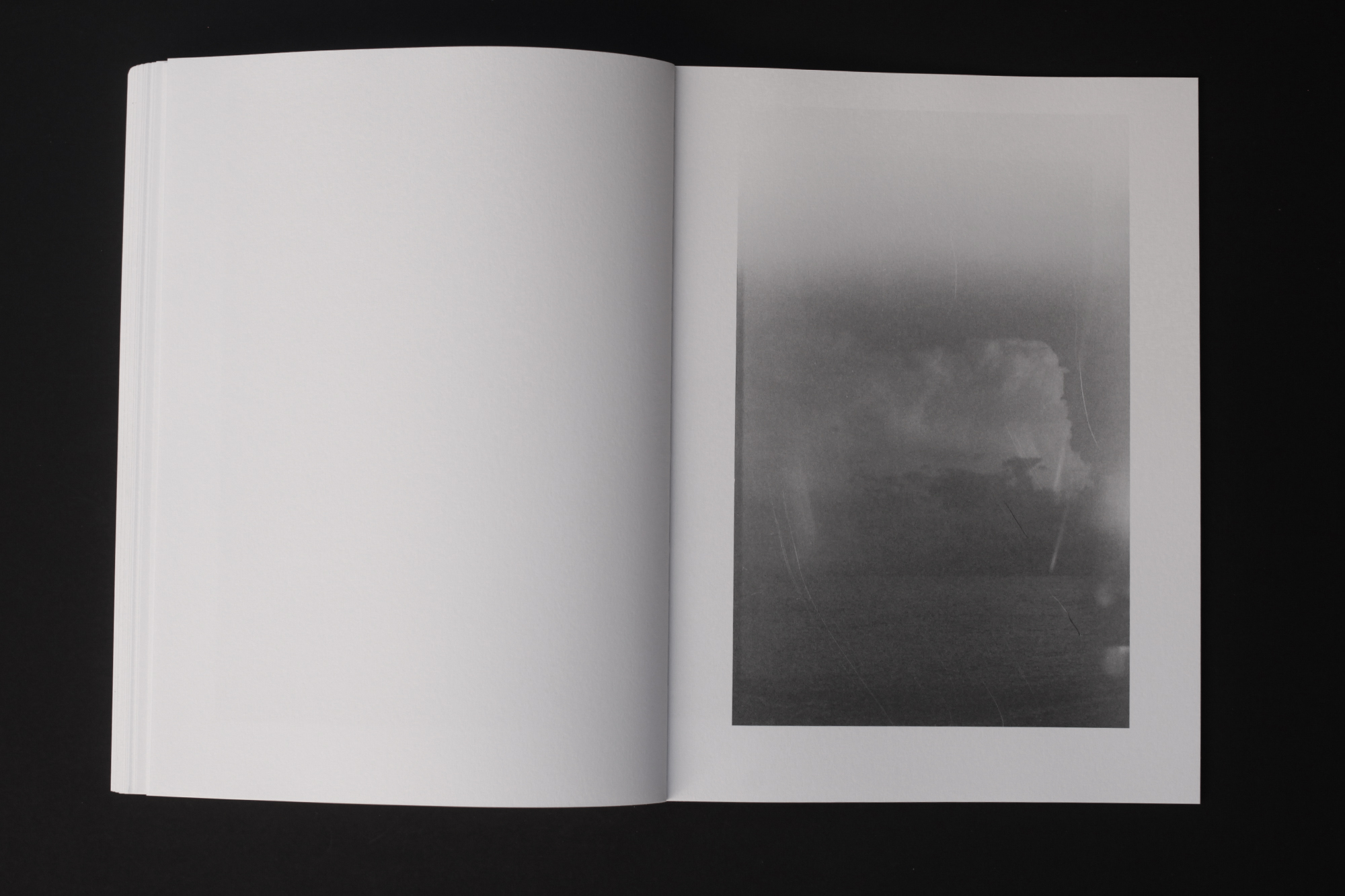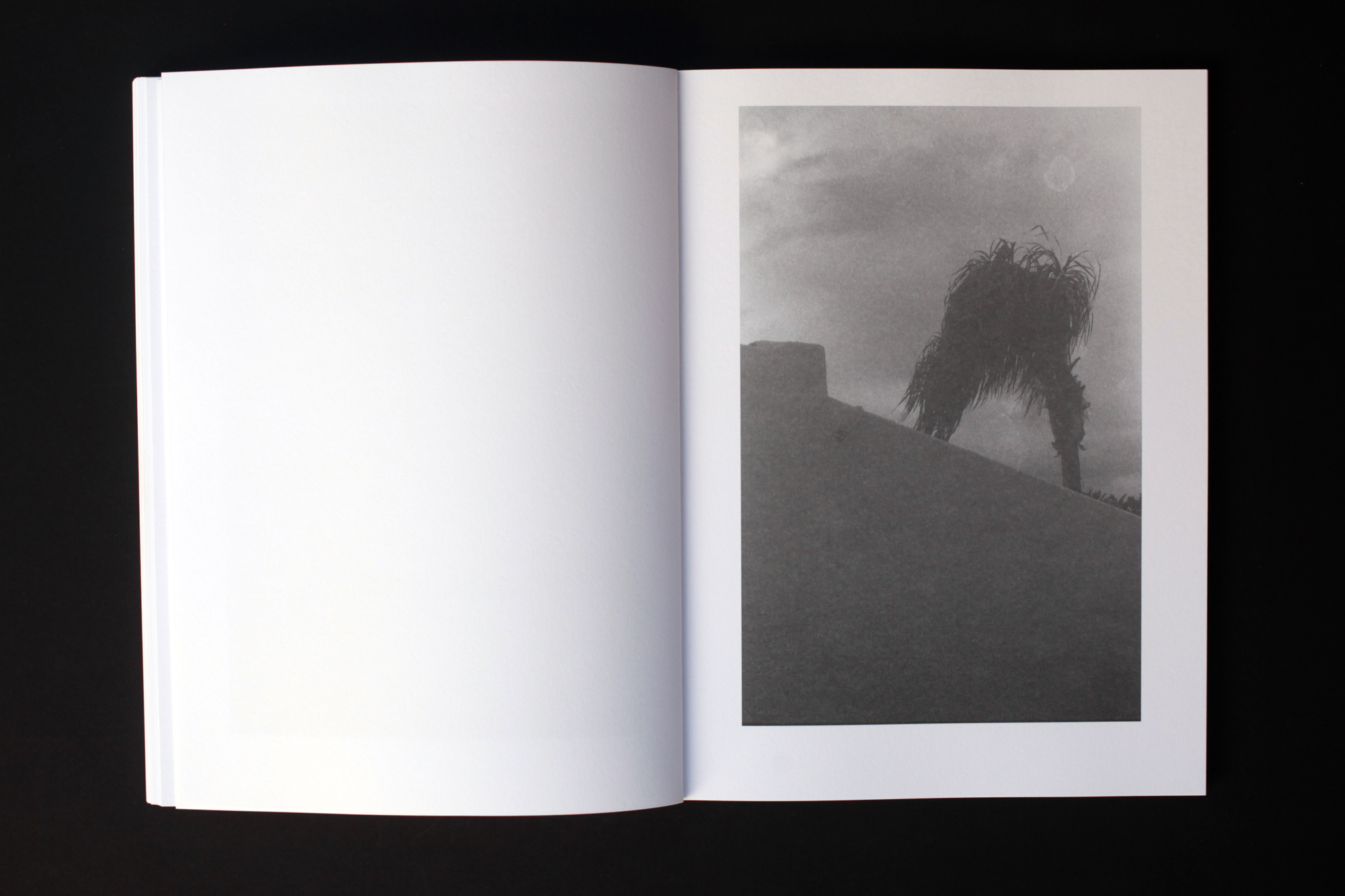 Containing 90 monochrome photographs offset printed on heavy uncoated paper, (the) ‘Malia’ begins in the morning and over an expanse of 180 pages, through the greys (ash to charcoal), the tones, the shadows, it closes at sunset, on top of the volcano. This Malia.